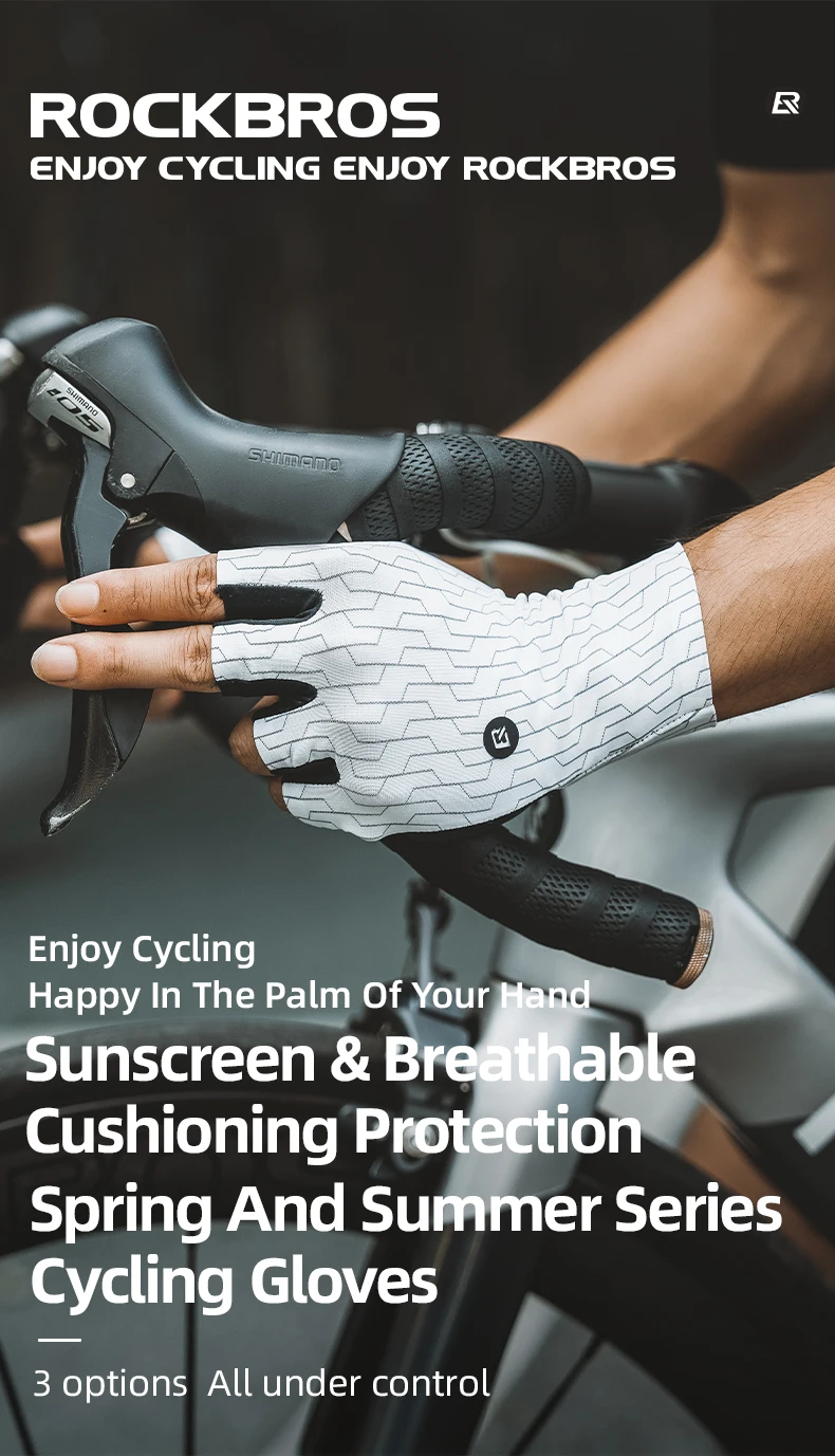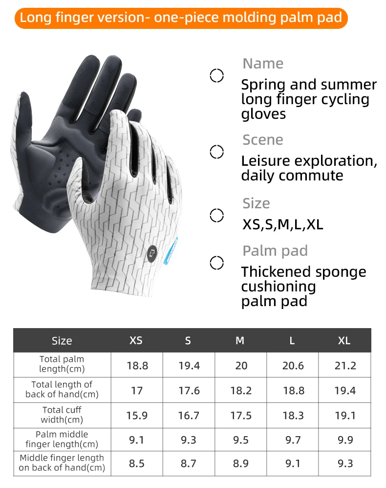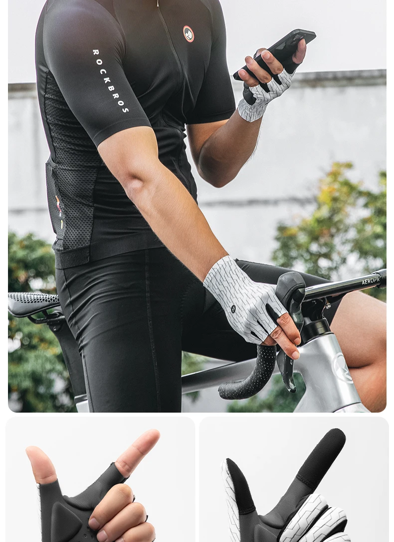 ROCKBROS S373 Cycling Gloves Sunscreen Breathable MTB Road Bike Gloves Shock Absorption Non-slip Gloves Outdoor Thickened Palm Pad