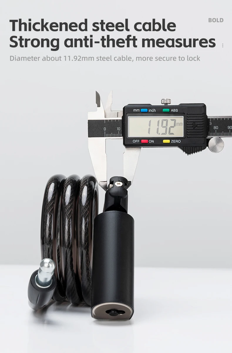 Diameter about 11.92mm steel cable, more secure to lock