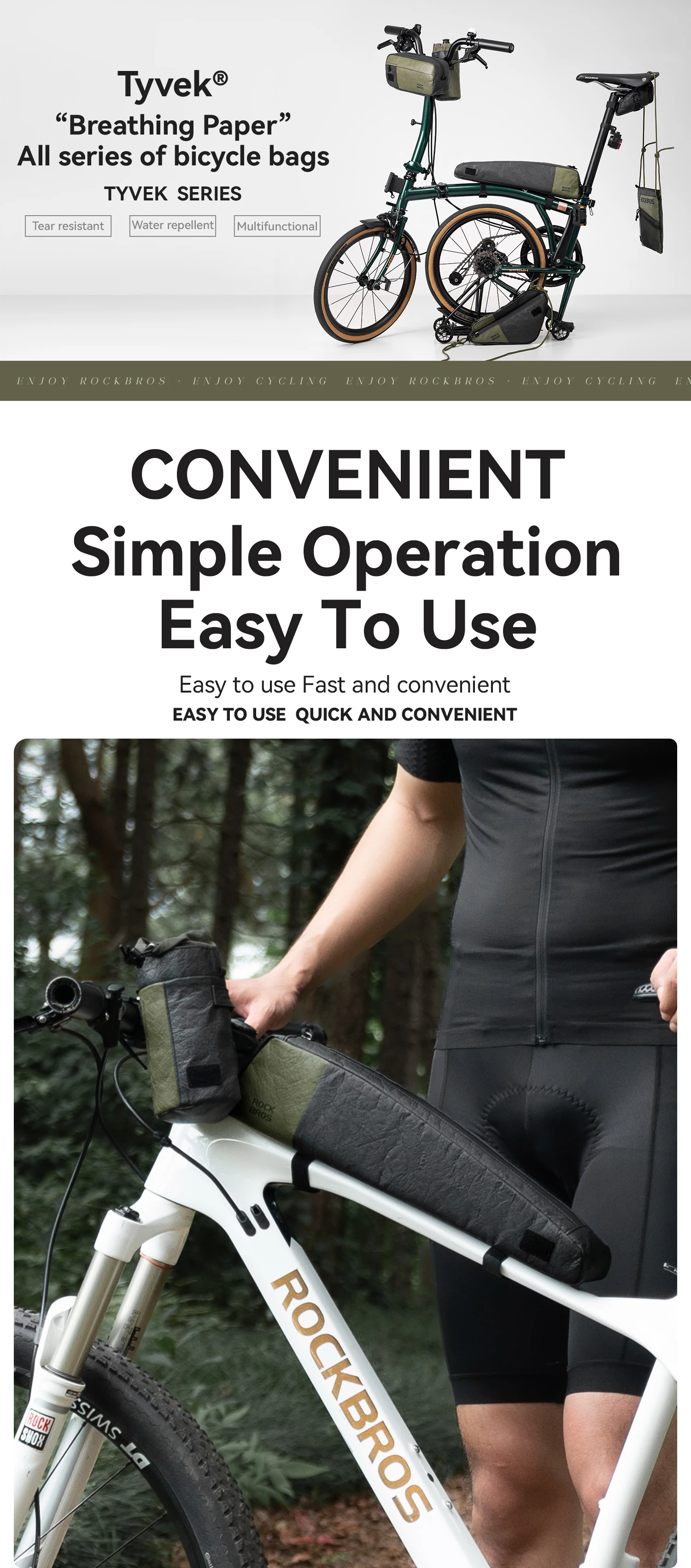 The Rockbros DB005 Bicycle Top Tube Bag combines large capacity storage with a lightweight Tyvek upper tube construction perfect for urban commutes and multi-day bikepacking adventures. Durable lightweight design keeps weight off your frame while providing easy access to essentials during rides. Order from the official Rockbros store today for the best price and fast shipping on quality cycling gear.